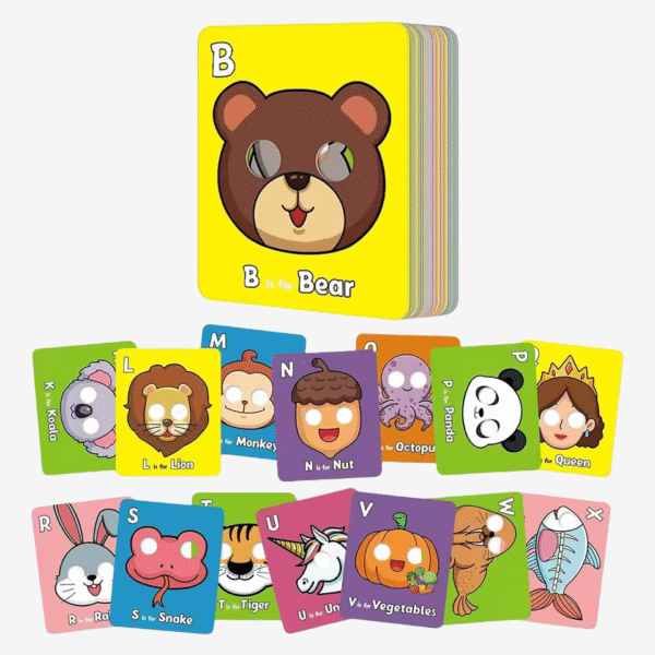 These vibrant alphabet learning flashcards feature animals, fruits, and objects corresponding to each letter. Designed for toddlers and preschoolers, they encourage recognition, vocabulary building, and early reading skills. Each card is durable, easy to hold, and perfect for interactive learning sessions.
