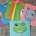 Colorful A-Z flashcards with animals and objects to make learning fun.
