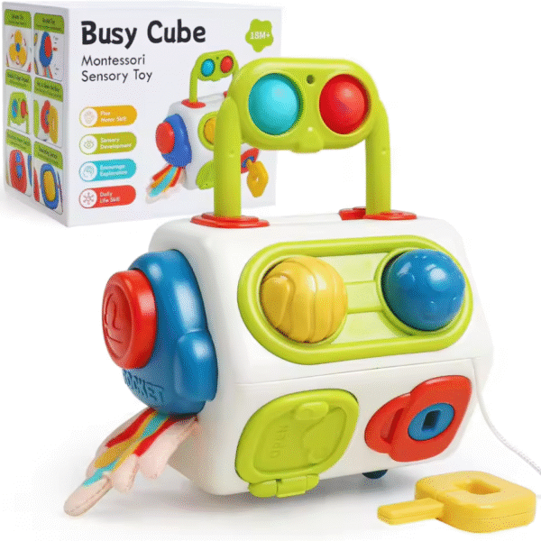 This activity cube includes shape sorting, switches, gears, and keys that encourage exploration. It supports sensory development, fine motor skills, and logical thinking in toddlers. Safe and durable, it provides hours of educational fun and skill-building play.