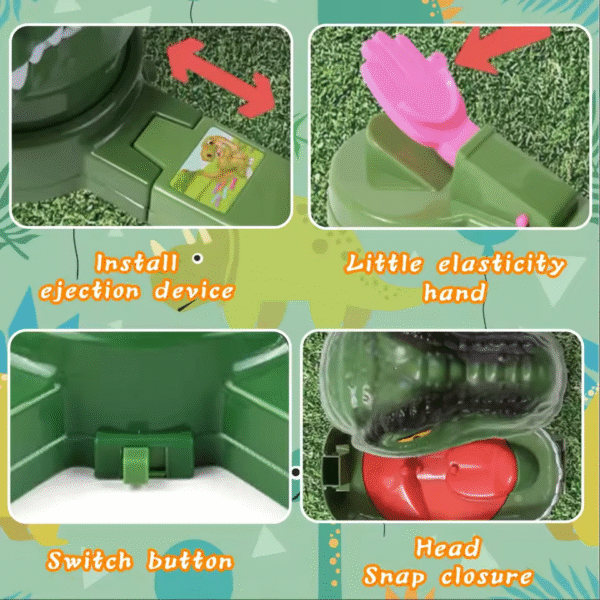 This dinosaur ejection game combines fun and challenge with its snap-closure head, switch button, and elastic hand launcher. Kids can enjoy action-packed play while developing reflexes and problem-solving skills. A great addition to party games and family fun time.